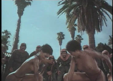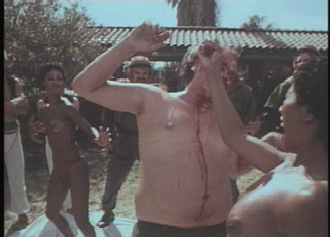 Unterstützt wir sie von 2 schwarzen Gespielinnen die den Eindruck erwecken nur gut auszuschauen und den Streifen noch mehr Fleischbeschau einzuhauchen. Dem wird man aber schnell eines besseren belehrt. Sie legen die Männer reihenweise flach, nicht durch sexuelle Macht sondern ganz einfach durch Kampfkunst der asiatischen Sorte. Ilsa wird von diesen beiden lesbischen Bodygards fast immer in dem Streifen umschwirrt. Im Auftrag des Scheiches darf Ilsa nun als Aufseherin des stattlichen Harems foltern und morden. Wie gewohnt umgesetzt in extrem perverse FX die stellenweise ganz schön ausgefallen sind. Frauen werden als lebende Vaginal-Minen umgerüstet so, dass es beim Liebesakt zu dem etwas lauteren Bums kommt. Da kann man nur noch mit dem Kopfschüttel welche Methoden der Scheich anwendet um lästige, wohlhabene Landsmänner "beschenkt" zur Seite zur räumen. |